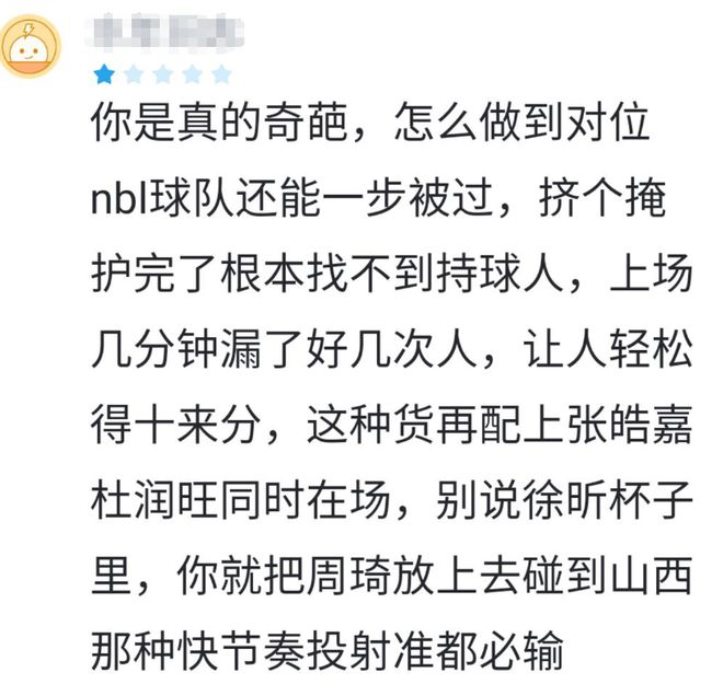 翻开赛后广东队球员数据,不难发现,在这一场33分大胜的背后,有3名球员的正负值拖了后腿,分别是-8的黄明依、-7的张文逸以及-4的陈家政,赛后张文逸是被批评得最多的,不少球迷在张文逸赛后的个人评分上打了低分,表示不想再看到张文逸在场上犯错了,甚至还有球迷恨铁不成钢直接怒斥:你是真的奇葩,怎么做到对位nbl球队还能一步被过,挤个掩护完了根本找不到持球人,上场几分钟漏了好几次人,让人轻松得十来分?