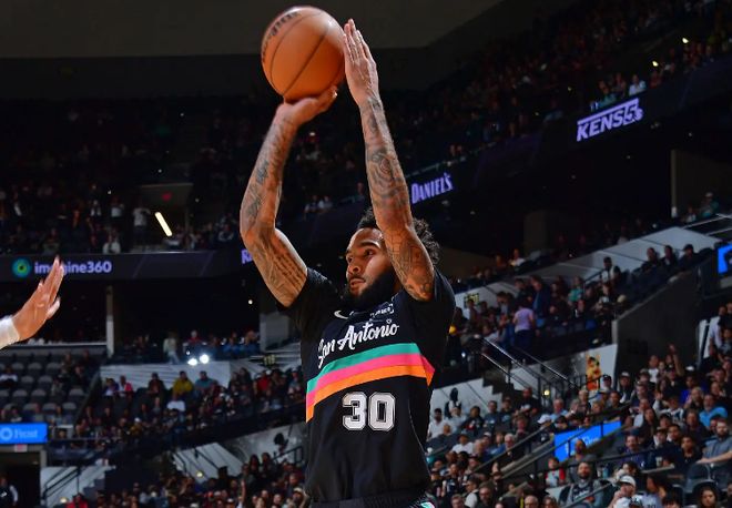 本场比赛中,马刺的先发锋线球员朱利安-尚帕尼(Julian Champagnie)的表现算得上是相当突出。尚帕尼全场出场31分14秒,投篮13中7,三分线外10中5,罚球1中1,得到了20分4篮板5助攻1盖帽的数据,还有1次失误和4次犯规,正负值为+15。尚帕尼在进攻端展现出了超强的外线投射能力,他的进攻效率非常稳定,得到了大量的分数。不仅如此,尚帕尼在传球和策应方面也是起到了非常不错的效果。除此之外,尚帕尼在防守端的表现也是可圈可点的,他也是能够给对手制造巨大的麻烦。总体来看,尚帕尼算是很好地扮演了3D锋线的角色,他在攻防两端都起到了应该起到的作用,甚至可以说是超水平完成了自己的任务,这也是球队能够最终战胜对手的重要因素。