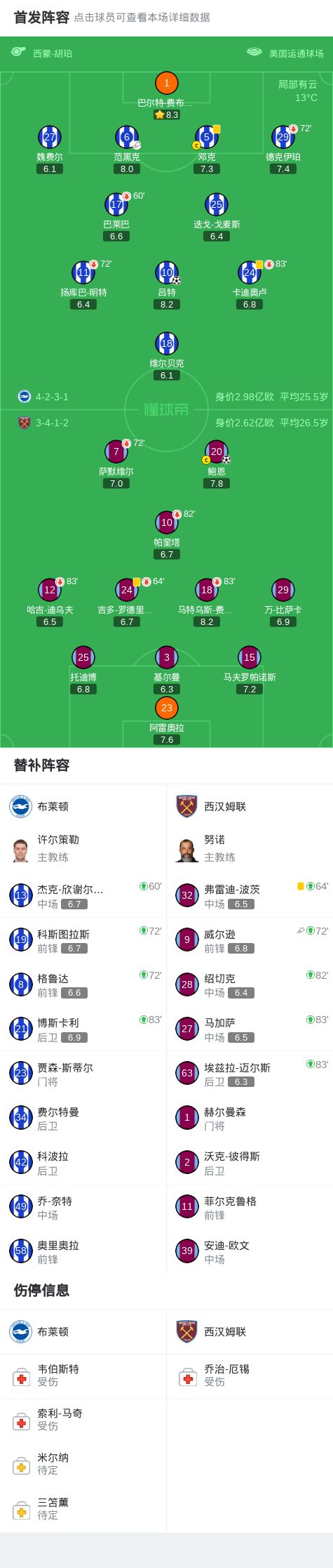 第33分钟,布莱顿左路传中制造威胁,魏费尔门前蹭射偏出